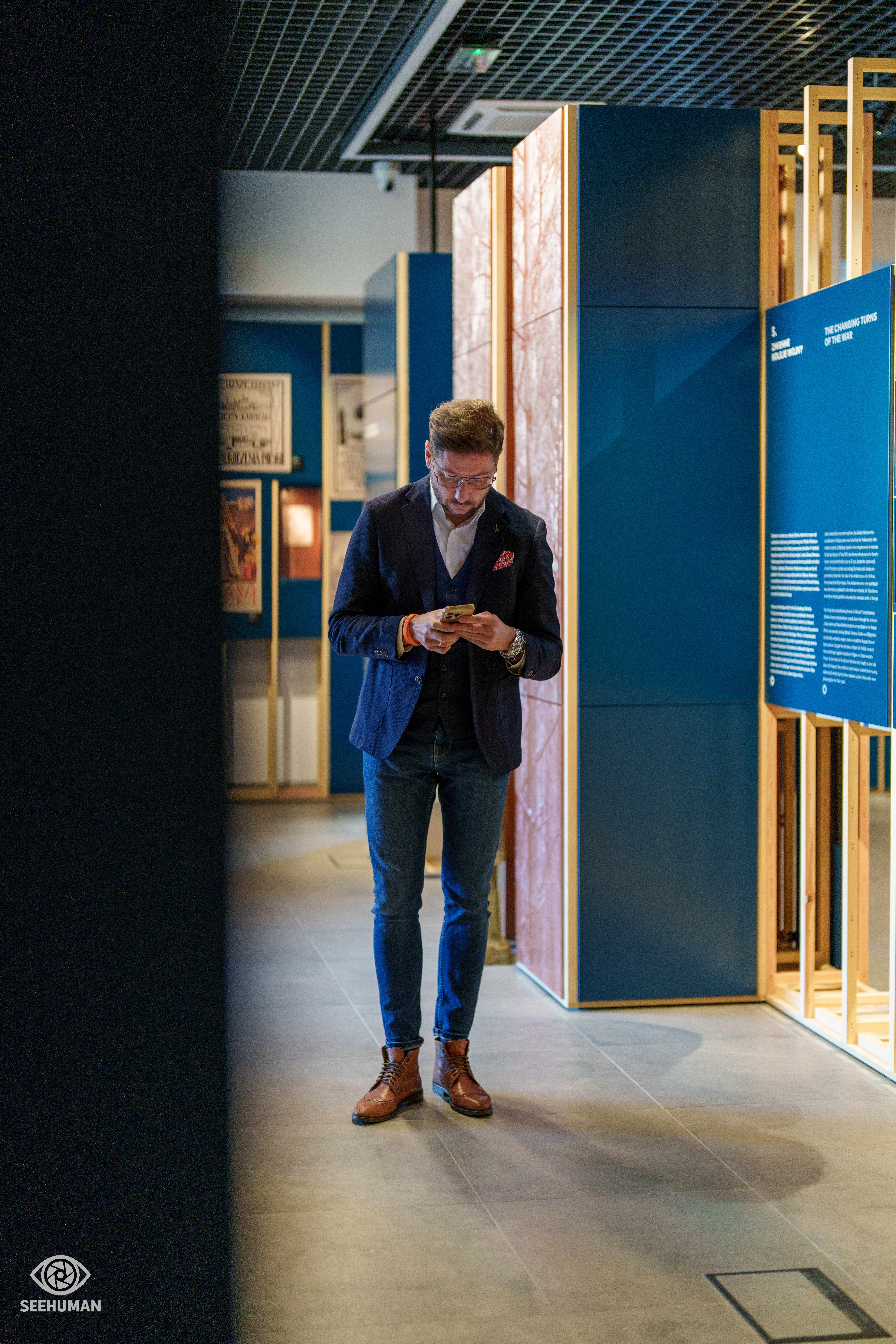 -goście kawiarni zaglądają na wystawy,
