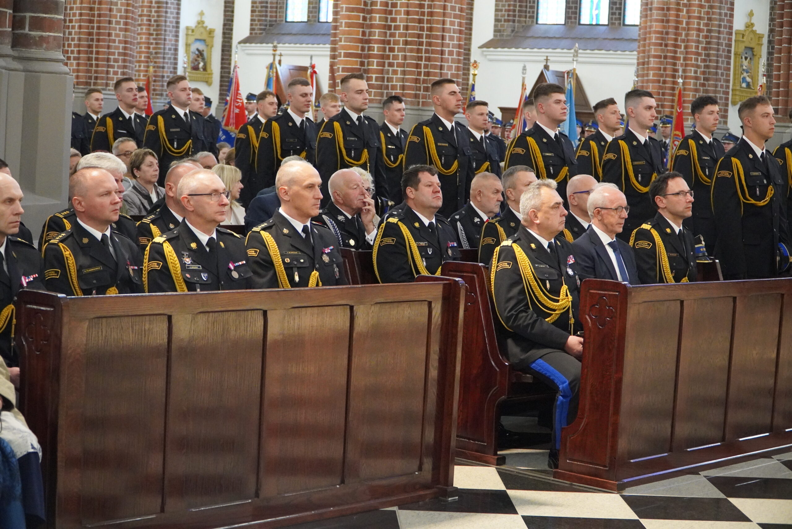 W uroczystej mszy świętej wzięli udział komendanci, absolwenci Akademii Pożarniczej, kompania honorowa i poczty sztandarowe. Oprawę muzyczną zapewniła orkiestra OSP Kaski.